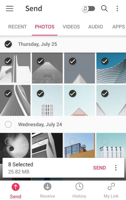 SuperBeam is an app with light, dark, and AMOLED color themes. First, you must pair the devices using NFC or QR code scanning. Then, you can share single or multiple files of different formats quickly. SuperBeam also allows you to track all the transfer operations. However, if you opt for the Pro version of SuperBeam you can send files or folders to more than one device simultaneously. Thus, it is a full-featured and user-friendly application used for file-sharing.