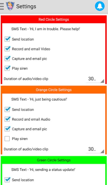 Update your kith and kin about your current location or alert them if you consider your location is not safe. You can find three colored buttons green, orange, and red in this app. The orange button denotes being cautious and if you are in danger then tap the red button. If you just want to update your current location to your friends, then tap the green button. The alert message with the location and link to Google Map along with two pictures is sent to the preconfigured email IDs.