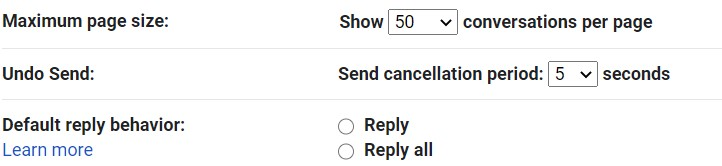 - Using the drop-down menu, you can set the timing on how long to see the ‘Undo Send’ option.